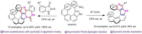 26. Tianren Qin#, Wansen Xie#, Xiaoyu Yang*, Catalytic enantioselective synthesis of azahelicenes via cascade Pictet-Spengler reaction and dehydrogenative aromatization, Nat. Commun. 2026, DOI:10.1038/s41467-026-70617-7