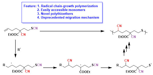 (7) Yaxin Zheng, Meiling Li, Yujing Jiao, Ji Zhang, Jian-Biao Liu, and Yifan Li* 1,4-Cyano Group Migration Involved Radical Cascade Polymerization. Macromolecules, 2025,58, 14, 7406-7413. https://pubs.acs.org/doi/10.1021/acs.macromol.5c01559