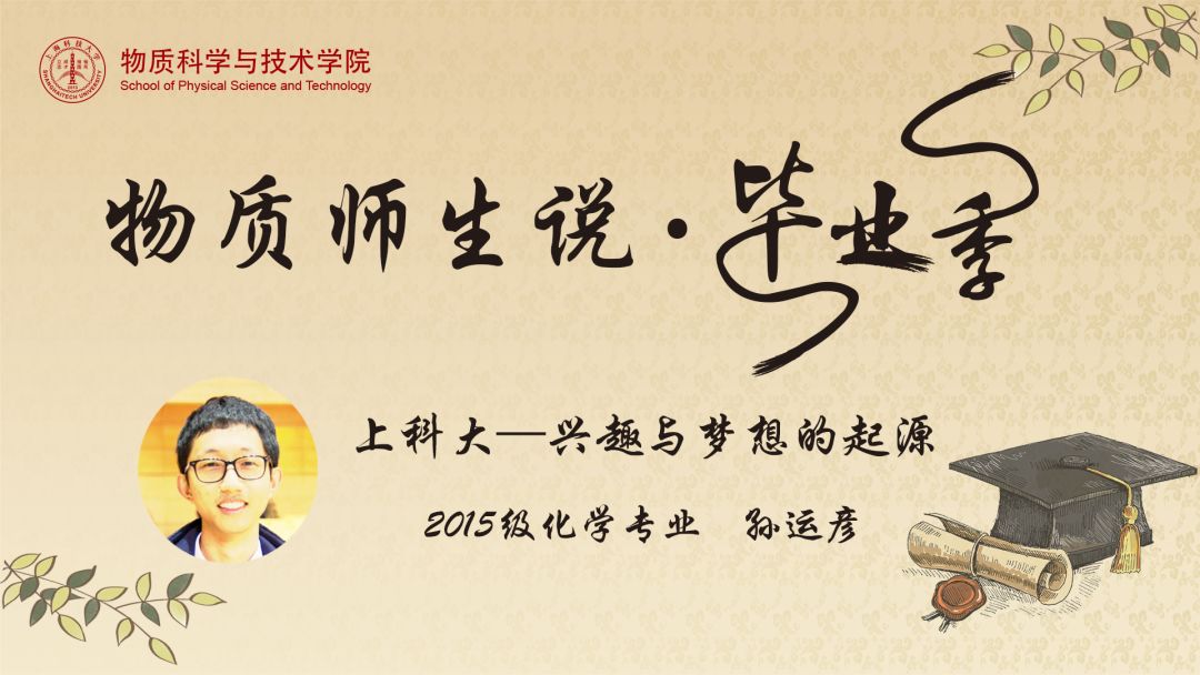 李智(物质学院助理教授):孙运彦同学是非常杰出的人才,我相信他在其他学校就读也会取得很高的成就。那上科大对他有什么帮助?学术方面的丰富资源触手可及自不必说,没有耽误他成长的宝贵时机,也没有因为他的成长而耽误别人的成长;我想学术之外的环境也很特别,作为“拓荒者”没有多少往届学生的经验可循,反而促使他更早开始独立思考,认清自己,主导未来。这些资源和环境其实对每个学生都是公平的,但被动等待和主动选择的收获是完全不同的。希望他的经历可以激励更多的上科大学子在这里真正发现自我,冲出张江,走向世界。攻读PhD只是一个新的开始,祝他一切顺利!