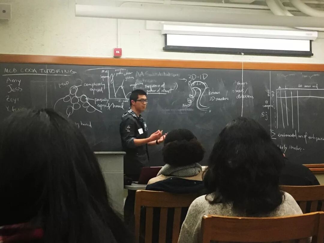 由于一些时候学有余力,我非常乐于以各种形式去帮助同学们解决各种课程上的问题。大一的时候,我就曾非官方地开过普通化学课的小讲座,帮助同学们在期末考试前梳理重要的知识点。大二时,我与汪潇同学合作,共同每周为低年级的同学开设物理、化学课程的辅导课,增进大家对于重难点的理解以及讲授习题的解题方法。大三时,适逢高等数学、数学分析课程开放助教岗位给本科生,我如愿以偿地做了一学期官方承认的助教工作。这一学年在伯克利交换时,因为第一学期在一门数百人的大课Biophysical Chemistry课上成绩突出,被教授选为了这一学期的tutor(导生),也是每周讲一次lecture的形式帮助这一学期选课的同学。用纯英文给绝大部分是英语母语的同学讲课当然非常地有挑战性,但得益于已有的讲课经验打消了我的畏难情绪,我还是坚持用充足的准备打磨每一次的授课质量,尽全力帮助选课的同学。