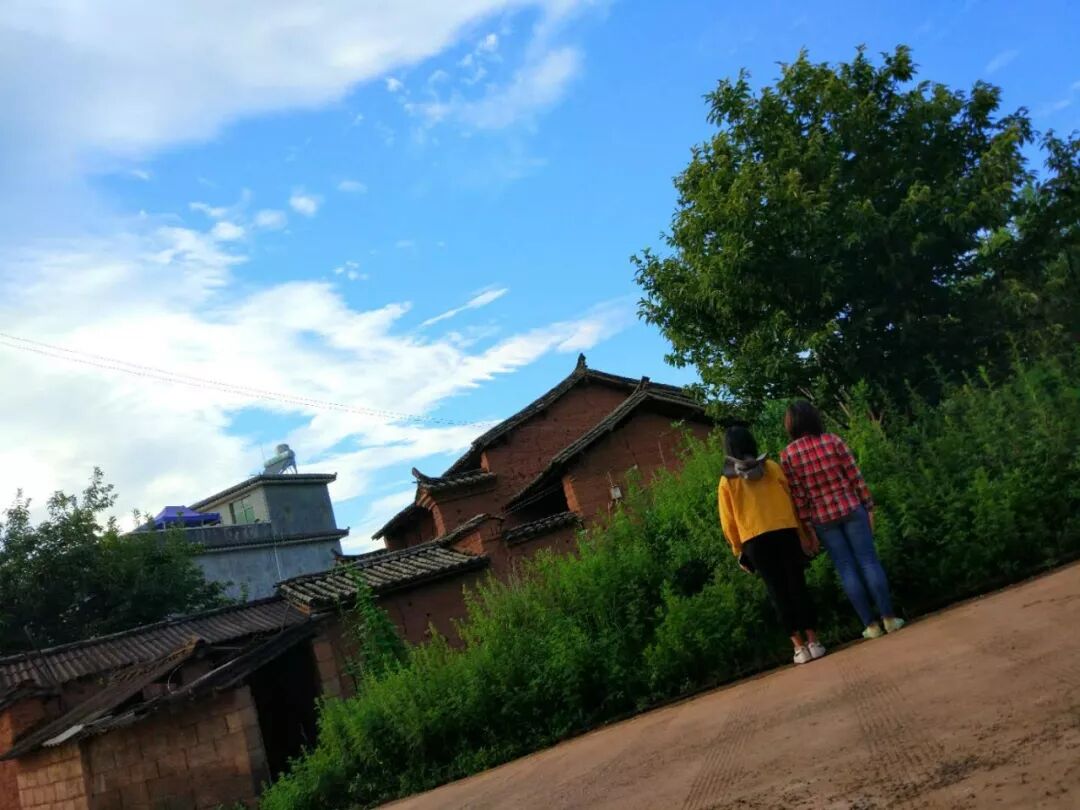 每天傍晚,和同一个项目点的伙伴散步去村头看夕阳