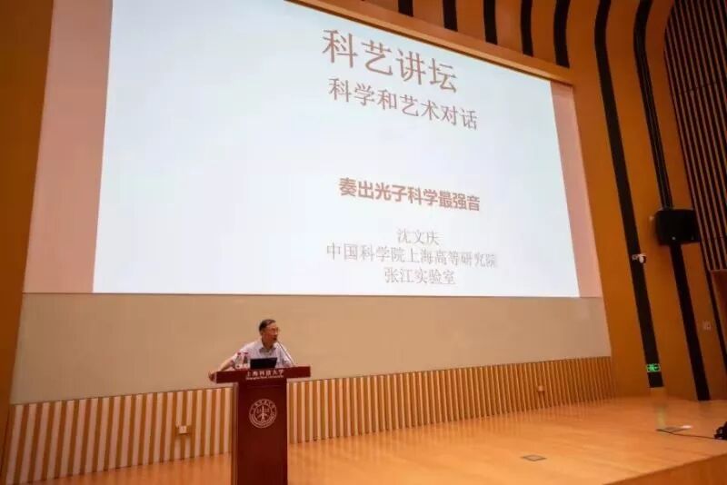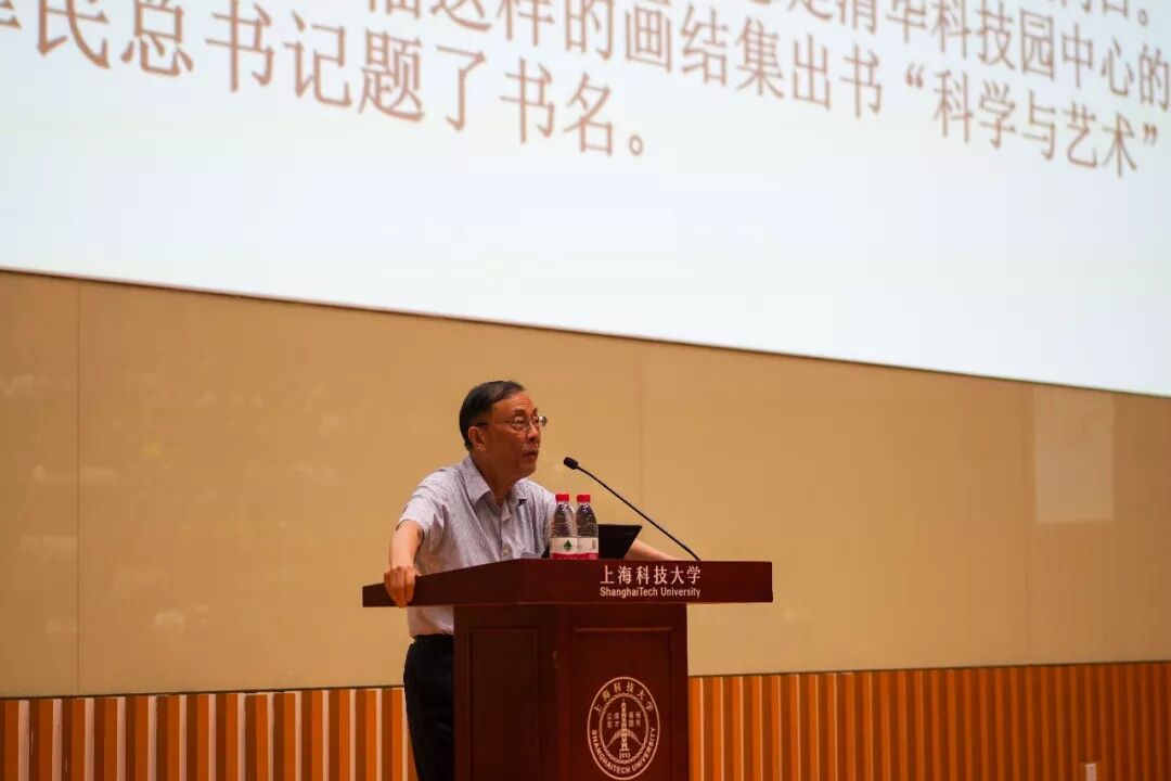 沈文庆院士在讲座中作了关于科学与艺术对话、及科研诚信的报告。沈院士在演讲中指出三点核心思想:科学家一定要有想象力;一定要做别人没做过的事情;做学问,首先要科学诚信。在演讲中,沈院士围绕“科学与艺术对话”主题,分享了李政道先生重视艺术、尊敬艺术、通过艺术展现科学的故事,告诉新生们艺术能使人获得灵感,使人心灵重建。他说:“艺术也能促使人们为科学、为艺术、为更美好的生活做出更多贡献,也能鼓舞激励人们的斗志,使人们团结在一起。”在高能物理中,绘画能把最前沿的东西演绎到位,让人看到后有很多联想,激发了人们的想象力。而在整个物理学的尖端领域,包括超弦理论、暗物质暗能量、四大相互作用的统一等,艺术也能天马行空地把宇宙、天体表现出来。“科学揭示最深层次的原理,艺术揭示人们精神上最深刻的感情。”沈院士谈及科学与艺术的交融和结合时不免激动地说道。