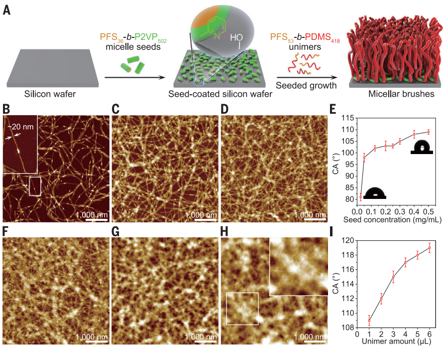 1、2016级博士蔡建东研发了一种在材料表面活性生长嵌段共聚物胶束刷的方法,在催化、抑菌、分离等诸多领域表现出良好的应用前景。2019年11月,成果在国际顶级期刊《Science》上发表。