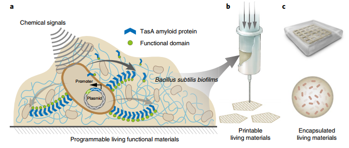 4、2015级博士刘苏莹和2015级硕士张琛共同开发出可编程可3D打印的生物被膜活体功能材料。2018年12月,成果在国际著名期刊《Nature Chemical Biology》在线发表。