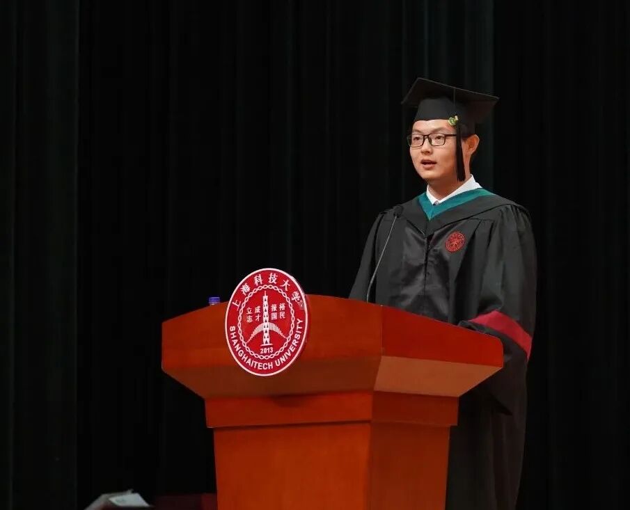 大三的难忘经历是参加了中国大学生物理竞赛。从高中开始,我便对这个针对实际物理问题进行合作研究、发表观点和进行辩论的比赛充满了兴趣,可惜因为种种原因没能参赛。直到大三,在学院的大力支持下,我终于得偿所愿作为助理教练和校赛策划人参加了比赛。学院的老师与我们学生教练一起,为全校100多名参赛同学提供了实验场地和器材,举办了校赛,对校队进行训练,并最终让首次参赛的上科大站到了全国决赛的舞台。记忆最深的是华东赛区出征前的那个晚上,同学老师们一遍一遍订正ppt,改进表达和准备提问,彻夜不眠,却丝毫不觉疲倦。为了上科大和物质学院的荣誉,大家凝聚在了一起,形成了有战斗力的团队,最后取得了骄人的成绩也留下了难忘的回忆。在物质学院这个大家庭,还有很多像我一样主动为团队而奉献的同学。16级的孙哲韬、陆一俊和刘傲等同学辛苦策划了所有的毕业季活动,16级的袁澜清、傅云鹏和张潇文等同学打磨了精美的学院毕业短片。而大家也可以看到,今天在场的还有很多身穿红色校服的志愿者们,是他们让今天的毕业庆典得以顺利举办。物质学院的这些丰富多彩的活动让我们锻炼了自己,培养了团队工作的能力,也找到了物院人的归属感和荣誉感。