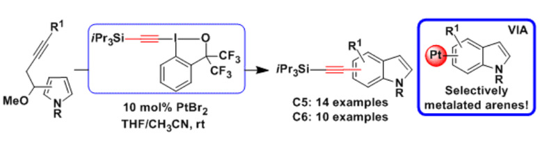 (4) Platinum-catalyzed Domino Reaction with Benziodoxole Reagents for Accessing Benzene Alkynylated Indoles