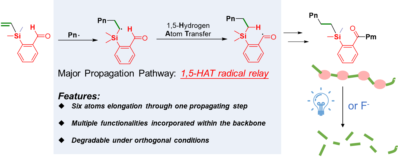 (3) Yuyu Chen,# Chaowei Yue,# Bang An, Shuai Liu, Litao Zhou, Chong-Lei Ji,* and Yifan Li* Six Atom Elongated Radical Polymerization Enabled by 1,5-Hydrogen Atom Transfer. Macromolecules, 2024, 57, 10, 4918–4925 (# Equal contribution)https://doi.org/10.1021/acs.macromol.4c00250